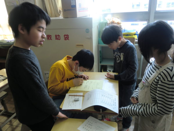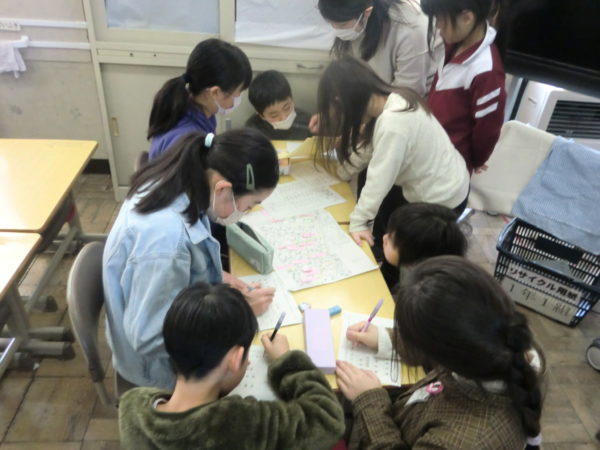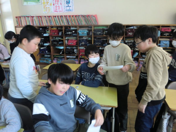 来年度の登校班編成や新1年生を迎える準備のための「町別児童会」が行われました。町内ごとに新児童長を選出したり、次年度の登校班を決定したり、新登校班長や副班長を決めたりしました。また、集合場所や時刻を改めて確認し、新1年生に向けたメッセージを作成しました。卒業する6年生も、下級生の活動の様子を見守りながら丁寧にサポートしてくれました。