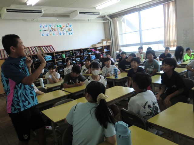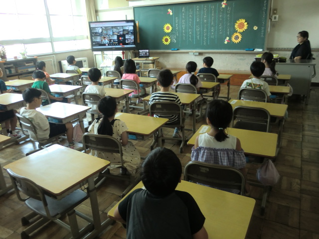 長い夏休みが終わり、静かだった校舎に子どもたちの元気な姿が戻ってきました。久しぶりに友だちや先生と再会して笑顔いっぱいの子どもたちでした。始業式は、暑さ対策として教室にてオンラインで行いました。校長式辞では、「戦後80年」という節目を受けて、互いに多様な考えを理解し合い、思いやりや優しさを持って関わり合うことの大切さ、そして「平和」の大切さについてお話しました。また、4年生の代表児童が2学期にがんばりたいことを堂々と発表しました。2学期も、一人ひとりが温かい関わり合いの中で力を伸ばし大きく成長できますよう、教職員一同力を合わせて取り組んでまいります。保護者の皆様、地域の皆様、2学期もどうぞよろしくお願いいたします。