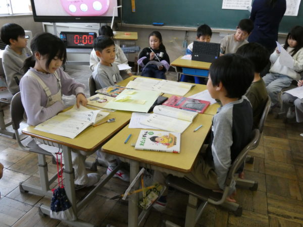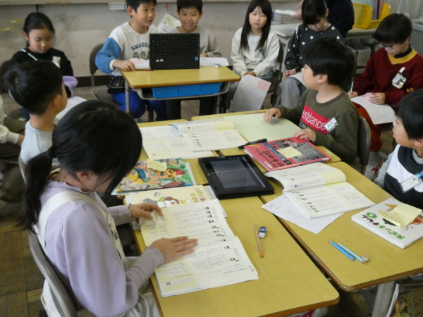 今、3年生の国語では「1年生におすすめの本を紹介して読み聞かせをしよう」というゴールをめざして、話し合い活動に取り組んでいます。話し合いの目的や進め方を理解し、互いの意見の共通点や相違点に気付きながら考えをまとめる力を身につけていきます。1年生のために…という目的意識をもち、それぞれが自分の思いを表現しながら互いを尊重し合って話し合い活動に取り組んでいる3年生。とても頼もしい姿です。